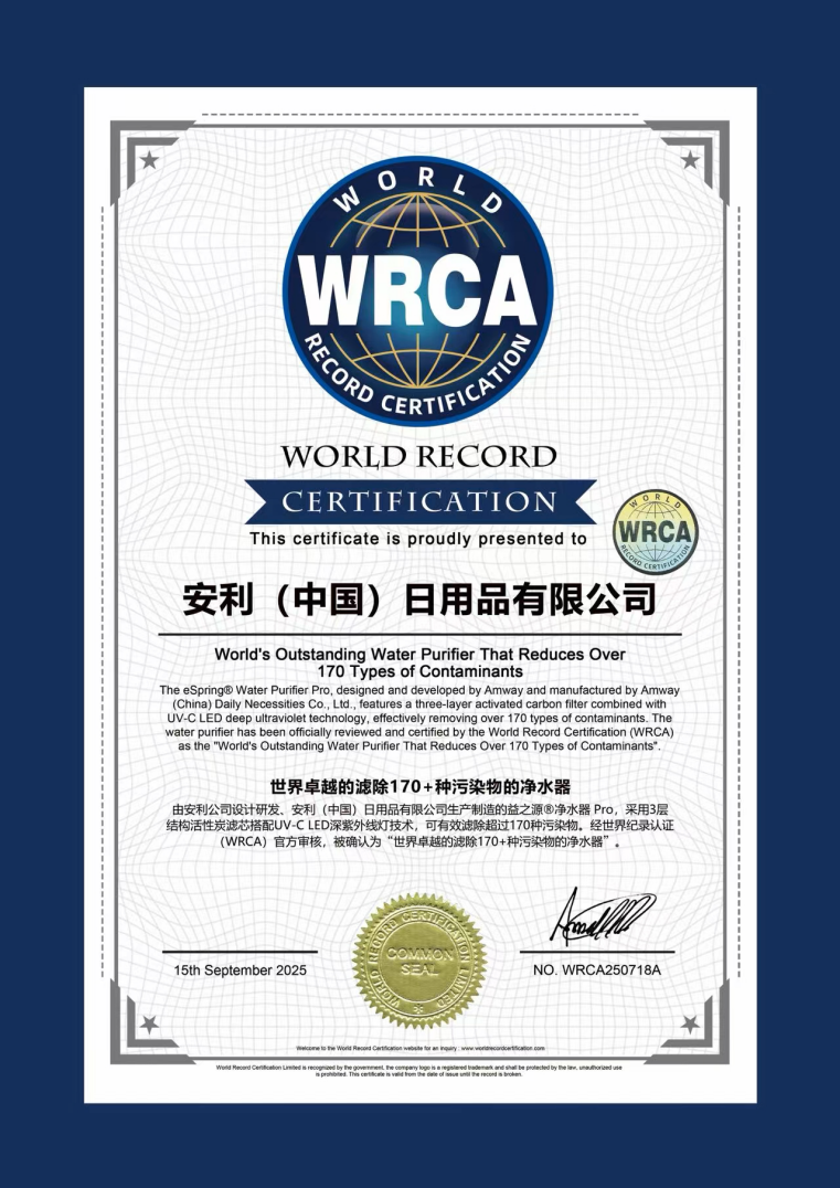 安利益之源净水器PRO获“滤除170+种污染物”世界纪录认证